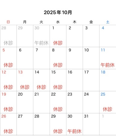 10月の休診日についてお知らせいたします。